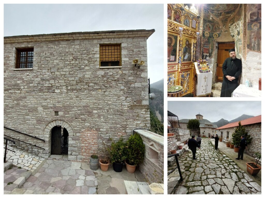 Ο πατήρ Νεκτάριος, ηγούμενος της μονής από το 2003, με μητέρα δημοσιογράφο και πατέρα οικονομολόγο, ο ίδιος διδάκτορας της ιστορίας, μας υποδέχτηκε θερμά. Μας μίλησε για λίγο για τη Μονή και μας κέρασε γλυκάκι αλλά και τσίπουρο, το οποίο έχει φτιάξει ο ίδιος!