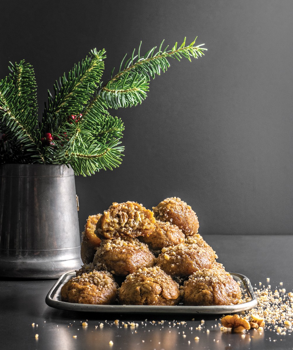 Ηδη από τα τέλη Νοεμβρίου νιώθαμε ότι πλησίαζαν, όταν η θεία Λίτσα έφερνε σπίτι τα πρώτα μελομακάρονα-φοινίκια, όπως η ίδια προτιμάει ακόμα και σήμερα να τα λέει. Μια πολύ αγαπημένη συνταγή της, με μπίρα στα υλικά, έδινε το εναρκτήριο λάκτισμα για μια υπέροχη εορταστική περίοδο. Δεν μπορώ να αποσιωπήσω την άφταστη γαλοπούλα του πατέρα μου Λεωνίδα -είχε το μαγικό άγγιγμα στα κρέατα- ούτε ότι Χριστούγεννα και Πασχαλιά ήταν οι γιορτές του. Ο μπακλαβάς της θείας Μαίρης με τα αμέτρητα, σωστά σιροπιασμένα φύλλα και την τραγανή του γέμιση κατέχει ξεχωριστή θέση στις αναμνήσεις μου. Από την πρώτη στιγμή που έμπαινα στο σπίτι, έσπαγε τη μύτη μου με τα αρώματά του και μετρούσα τον χρόνο να τελειώσει το γεύμα για να εμφανιστεί στο τραπέζι.