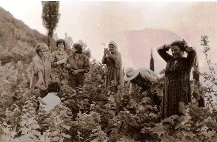 Φωτεινά πρόσωπα και χαμογελαστά, με ψάθες στο κεφάλι οι άντρες και μαντηλοδεμένες οι γυναίκες. Όλοι έκοβαν σκυμμένοι και μόνο οι κουβαλητάδες, τρέχοντας ανάμεσα στα κλήματα, άδειαζαν τα κοφίνια. Ο πιο έμπειρος ήταν αυτός που πήγαινε μπροστά απ’ όλους, διάλεγε τα πιο ώριμα σταφύλια και τα έβαζε κάτω-κάτω στα σακιά «για να βγει ο βαθμός καλός». Όταν το «γομάρι» ήταν έτοιμο, ξεκινούσε το γαιδούρι για την πρώτη στράτα και φώναζε το αφεντικό στον αγωγιάτη «τα μάτια σ’ τέσσιρα, μη χάσουμι το γράδο»…