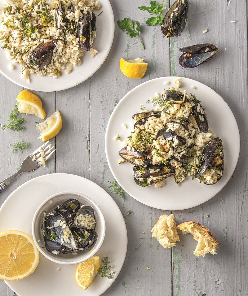 Μύδια σαγανάκι με μουστάρδα και φέτα