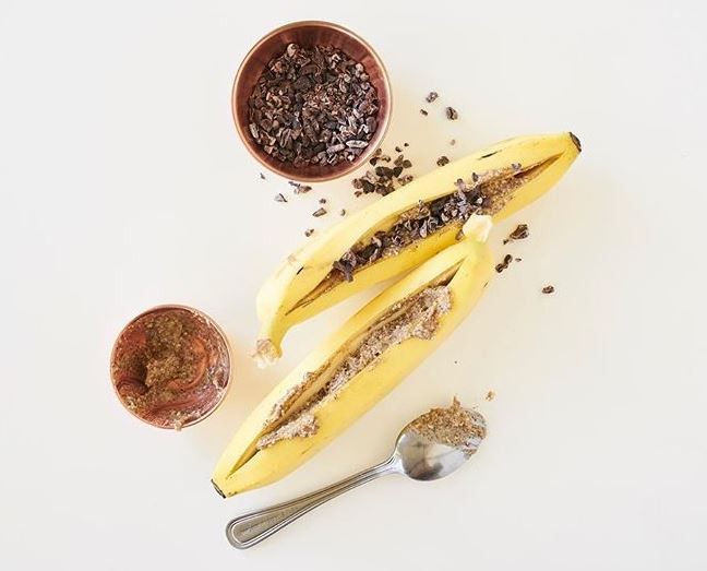 Kι όμως είναι πανεύκολο να μετατρέψει μια απλή μπανάνα στο απόλυτο επιδόρπιο! Το μόνο που έχει να κάνεις είναι να χαράξεις τη φλούδα από τη μία άκρη στην άλλη, ώστε να δημιουργηθεί ένα άνοιγμα. Στη συνέχεια το γεμίζεις με βούτυρο ξηρών καρπών και κομματάκια ακατέργαστου κακάο (cacao nibs). Βάλ’ την στην κατάψυξη για λίγο και μετά απόλαυσέ την με το κουτάλι. Εμείς έχουμε να σού προτείνουμε και μια άλλη νόστιμη παραλλαγή. Αντί να βάλεις τη μπανάνα στην κατάψυξη, δοκίμασε να τη βάλεις για λίγο στο φούρνο. Θα μαλακώσει και θα γίνει το πιο γλυκό και νόστιμο υγιεινό επιδόρπιο που έχεις φάει ποτέ!