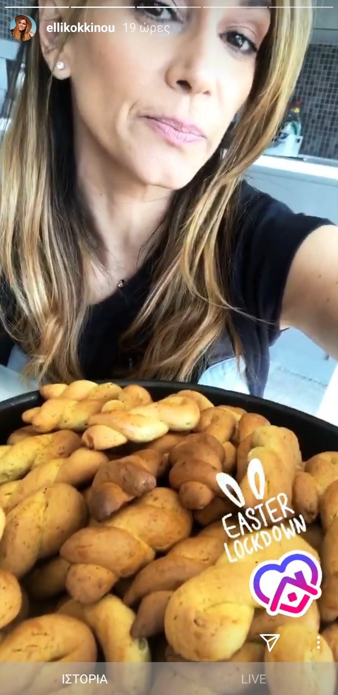 Στο ίδιο…πασχαλινό πνεύμα και η Έλλη Κοκκίνου με casual look και μέσα από την κουζίνα της μας παρουσίασε τον γεμάτο δίσκο με τα κουλουράκια της και η εικόνα είναι πολύ όμορφη. Δείτε: