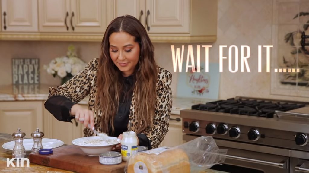 Για να τη φτιάξει ανακατεύει 2 κονσέρβες τόνο με μαγιονέζα, αλάτι και πιπέρι -όλα καλά ως εδώ-, και στη συνέχεια προσθέτει μέσα… fruit punch! Ναι, σωστά διαβάσατε, fruit punch στην τονοσαλάτα. Για να μας αποτελειώσει δε, αφού βάλει αυτή την τονοσαλάτα μέσα σε φέτες ψωμί, δεν διστάζει ακόμη και να βουτήξει το τοστ της μέσα στην τονοσαλάτα!!