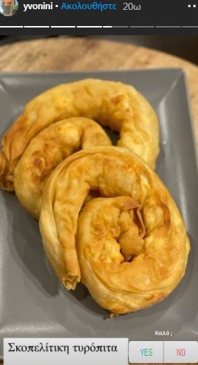 Μάλιστα, ανέβασε ένα στόρι στο Instagram, εντελώς άβαφη να ετοιμάζει τις πίτες της, οι οποίες όπως βλέπετε και στις φωτογραφίες φαίνονται λαχταριστές. Η Υβόννη Μπόσνιακ έδειξε το τελικό αποτέλεσμα, που ετοίμασε ανεβάζοντας τις δύο φωτογραφίες με τις λυχουδιές, που ετοίμασε.