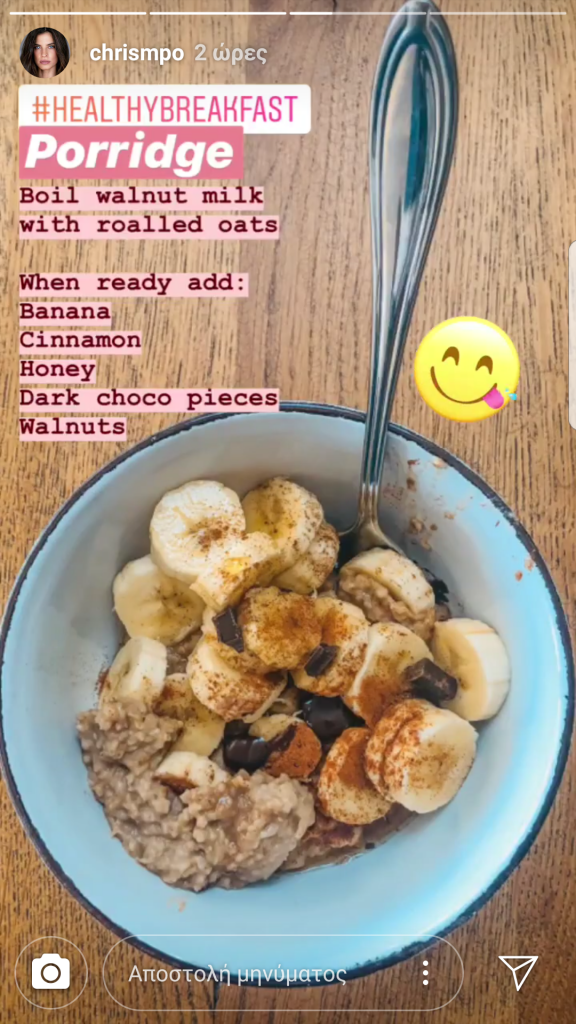 Η Χριστίνα Μπόμπα δεν παραλείπει να μάς δίνει νόστιμες ιδέες για θρεπτικά γεύματα μέσω του λογαριασμού της στο Instagram.