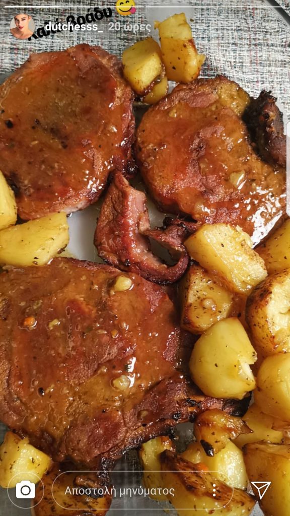 Μία από τις σπεσιαλιτέ της είναι οι μπριζόλες στο φούρνο με πατάτες, ένα φαγητό που φτιάχνει συχνά για τους αγαπημένους της. Πρόσφατα μοιράστηκε μαζί μας μια ακόμα φωτογραφία από το  πιάτο της στα Insta Stories. Μπορεί η Δούκισσα να μάς ευχήθηκε «Καλό βράδυ» με αυτή τη φωτογραφία, ωστόσο εμείς δεν μπορέσαμε να κλείσουμε ματί σκεπτόμενοι το πόσο ζουμερές και λαχταριστές έδειχναν οι μπριζόλες που μαγείρεψε. Περιττό να το πούμε αλλά ήταν το απόλυτο #foodporn