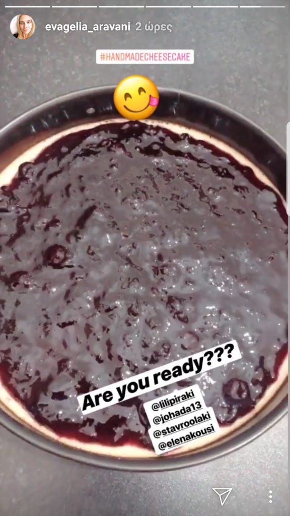Πρόσφατα, όπως μάς έδειξε στα Insta Stories της έφτιαξε ένα σπιτικό cheesecake με μαρμελάδα βύσσινο από πάνω, το οποίο και μοιράστηκε με τις καλύτερες φίλες της. Μπορεί να μη μοιράστηκε μαζί μας τη συνταγή, ωστόσο αν πατήσεις ΕΔΩ θα βρεις σίγουρα τις καλύτερες συνταγές για cheesecake.