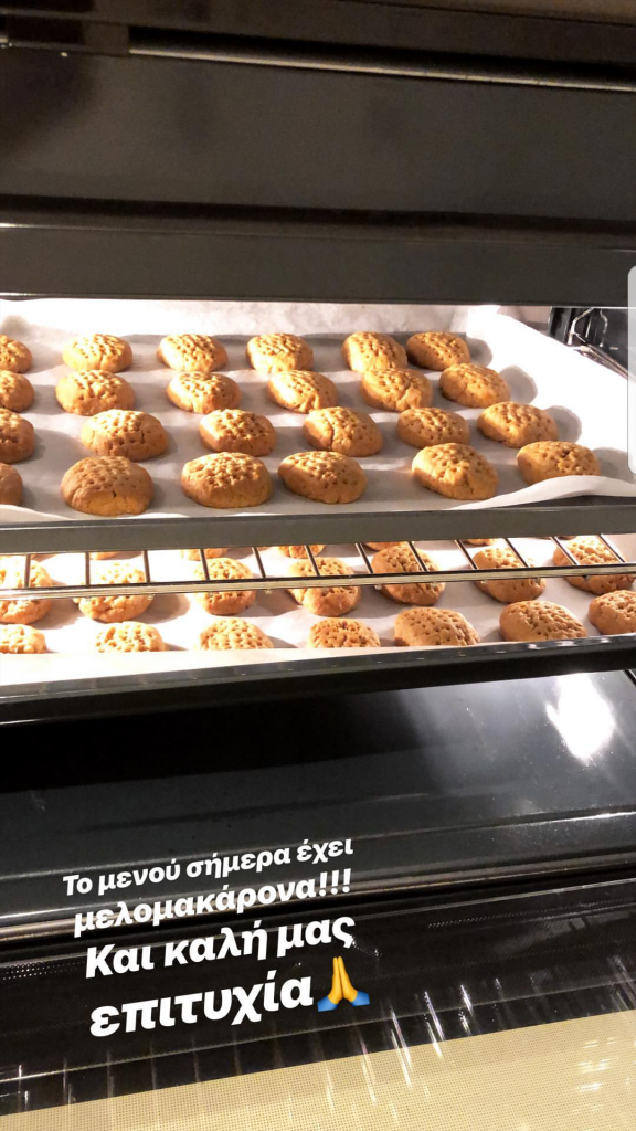 Απ΄ό,τι φαίνεται η παρουσιάστρια λατρεύει τα Χριστούγεννα αλλά και τα γιορτινά ψησίματα. Τι και αν πριν λίγες μόνο μέρες είχε φτιάξει κουραμπιέδες, έβαλε την ποδιά της και άναψε και πάλι το φούρνο αυτή τη φορά για να ψήσει λαχταριστά μελομακάρονα.