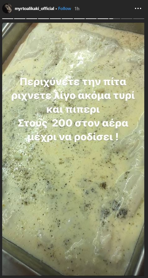 Η Βέφα του Instagram ή αλλιώς η Μυρτώ Αλικάκη ξαναχτυπά με μια ακόμα λαχταριστή συνταγή. Αυτή τη φορά η διάσημη ηθοποιός μας έδειξε βήμα βήμα στα Insta Stories της πώς μπορούμε να φτιάξουμε μια εύκολη και νόστιμη πατσαβουρόπιτα.