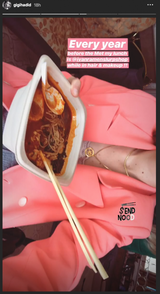 Κάθε χρόνο, το έχει σαν παράδοση να τρώει ράμεν πριν το event ενώ τής φτιάχνουν τα μαλλιά και τη βάφουν.