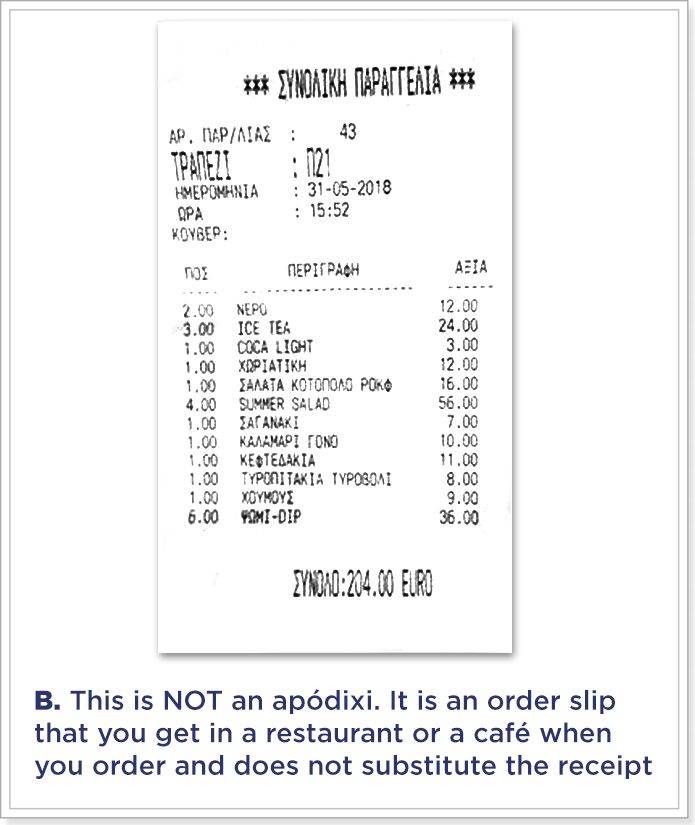 So in all cases, before you pay you have the right to ask for a receipt and you are not obliged to pay if you don’t get one. It’s so simple to say in Greek: “Apódixi please”!