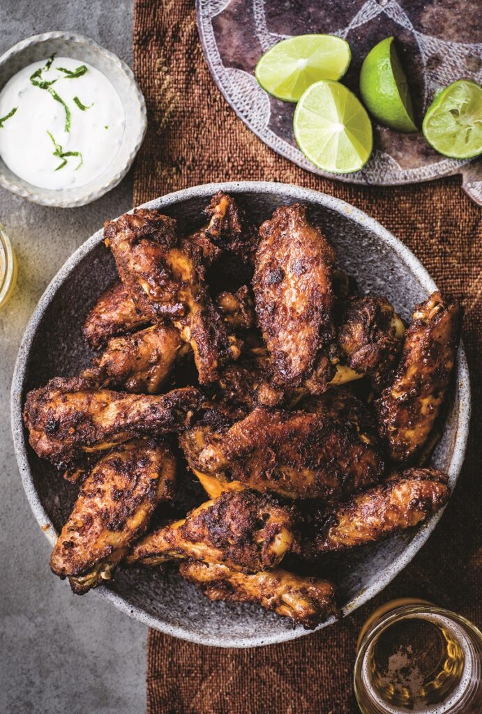 Ψήνουμε ζουμερές φτερούγες κοτόπουλου μαριναρισμένες με μυρωδάτα μπαχαρικά και συνοδεύουμε με δροσερή χειροποίητη σος γιαουρτιού.