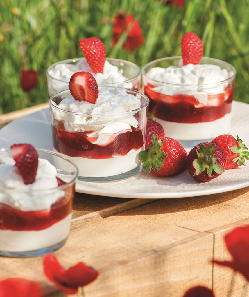 Κρέμα λευκής σοκολάτας με μαρμελάδα φράουλα