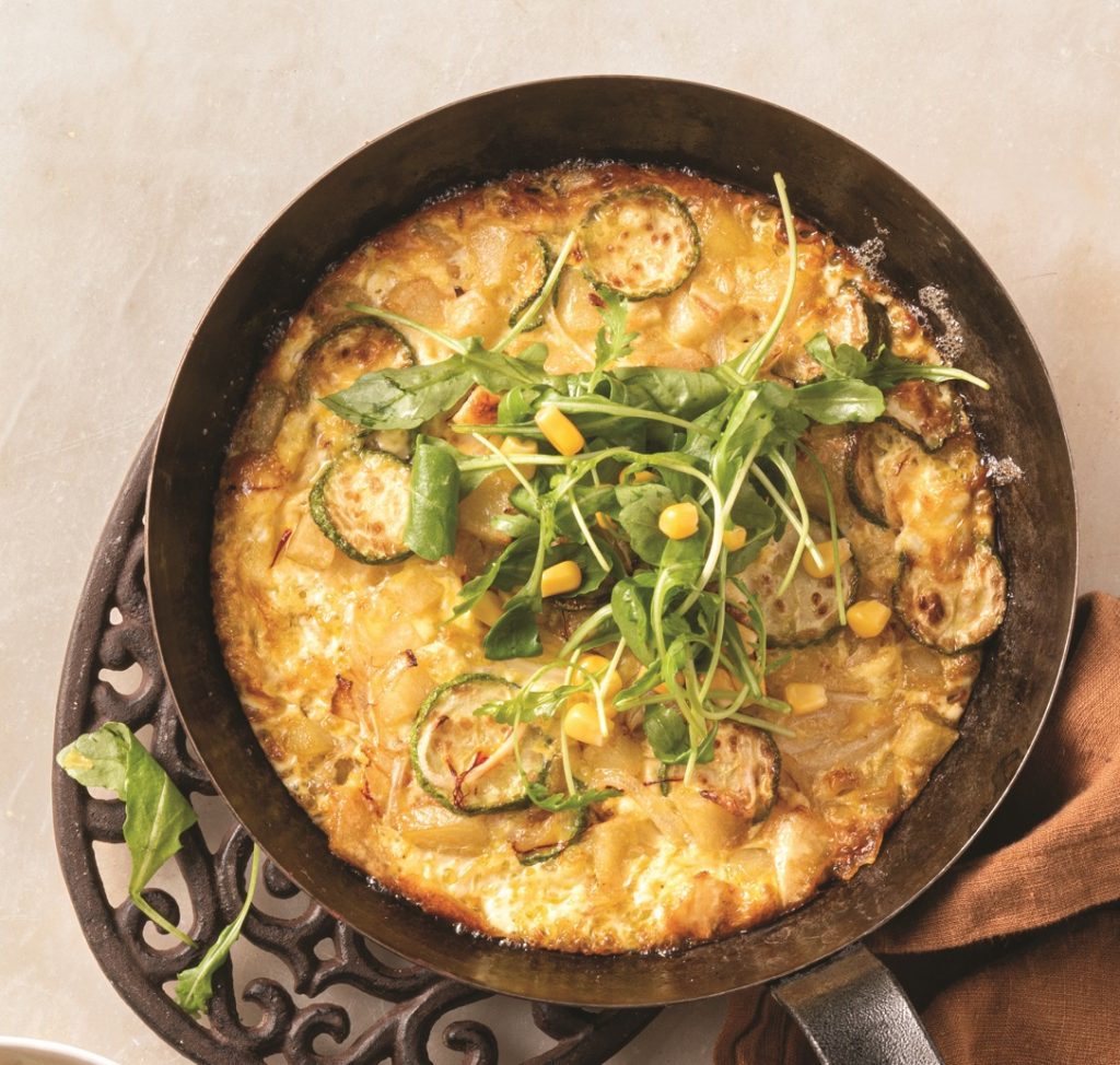 Ομελέτα με πατάτες, κολοκύθι, καλαμπόκι και σαφράν