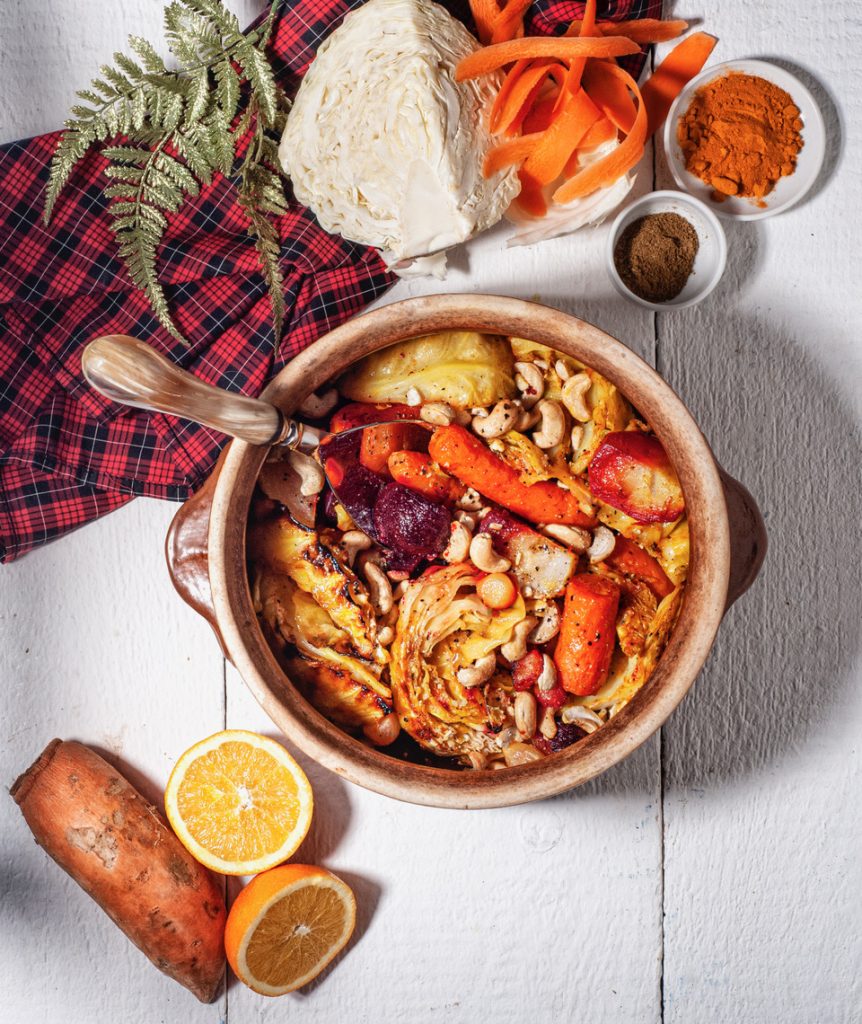 Χειμωνιάτικα λαχανικά στη γάστρα με κύμινο και πορτοκάλι
