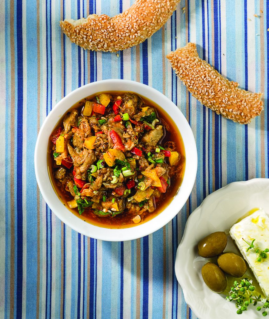 Μια συνταγή για πατάτες γιαχνί με τα δυνατά αρώματα της κάππαρης και των λαχανικών.