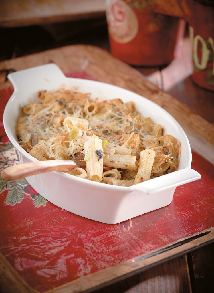 Ένα υπέροχο γκρατέν ζυμαρικών, που μπορεί να σταθεί επάξια στο γιορτινό τραπέζι, αλλά αποτελεί και τέλεια επιλογή για την Κυριακή μετά τα Χριστούγεννα. Παραμένει γιορτινή επιλογή, ενώ μας επιτρέπει να αποφύγουμε το πολύ κρέας.