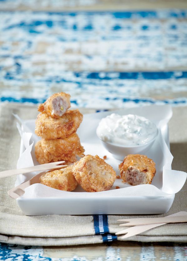 Τα κεφτεδάκια στην «παλατιανή» εκδοχή τους τυλίγονται σε τραγανό φύλλο κρούστας, αλλά κάνουν και πολύ καλή παρέα με ένα δροσερό τζατζίκι από ραπανάκια.