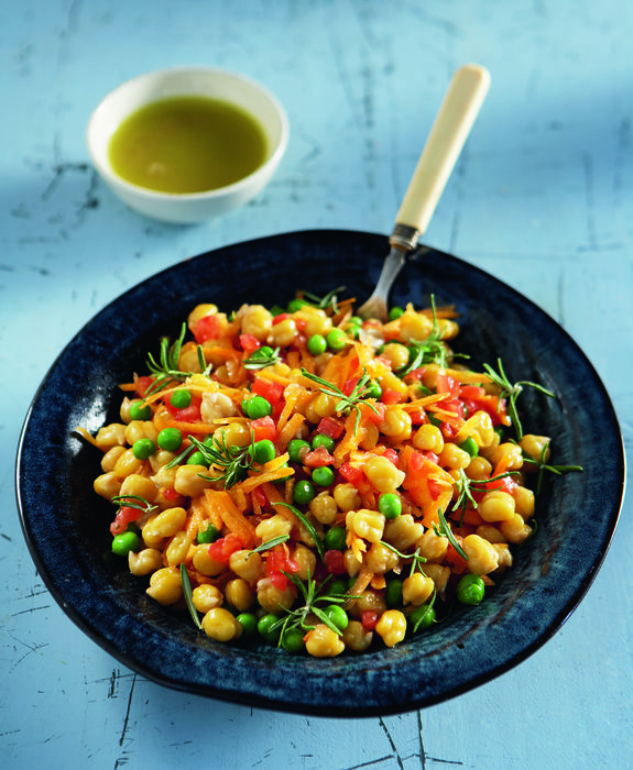 Ζεστά ρεβίθια με ψιλοκομμένη ντομάτα και καρότο