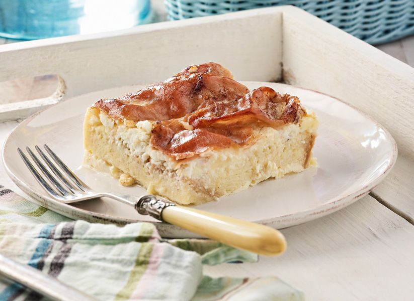 Η «παπαρόπιτα» της Γεωργίας με τυριά και προσούτο. Την ετοιμάζουμε αποβραδίς και τη σερβίρουμε για κυριακάτικο πρωινό ή μεσημεριανό. Είναι και μια καλή λύση για να αξιοποιήσουμε το μπαγιάτικο ψωμί που περισσεύει στην ψωμιέρα μας.
