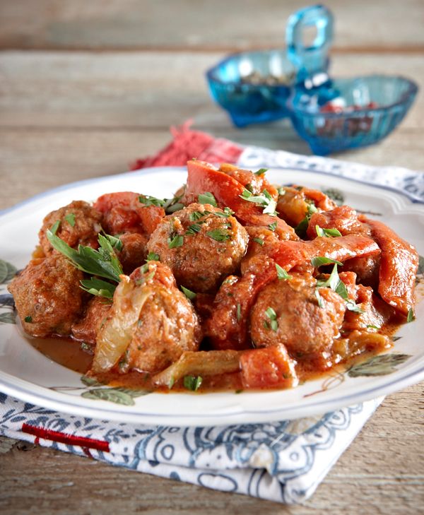 Κεφτέδες αφράτους και ζουμερούς μαγειρεύουμε σήμερα, μαζί με μία πλούσια σάλτσα ντομάτας με πιπεριές, που ταιριάζει ιδανικά με τηγανητές πατάτες.