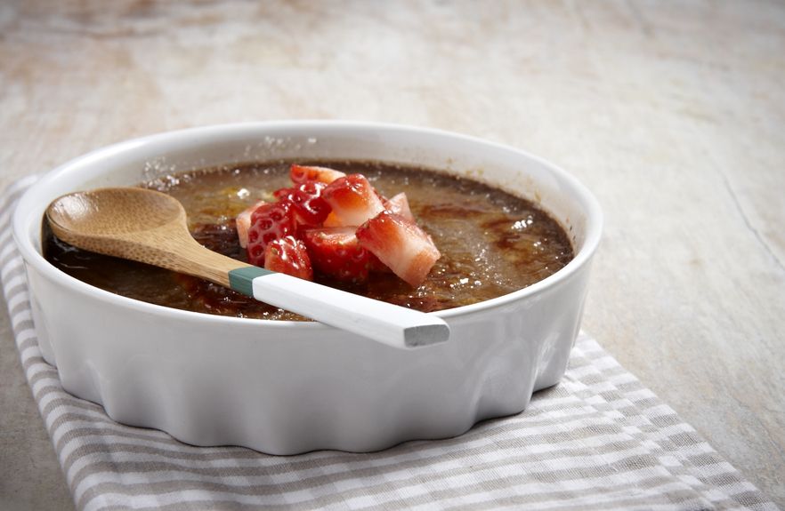 Τέλος, για να κλείσει ωραία η εβδομάδα, φτιάχνουμε κρεμ μπρουλέ σοκολάτας. Γαλλικής προέλευσης η crème brûlée ανήκει στην κατηγορία των ψημένων κρεμών και είναι το ιδανικό επιδόρπιο. Η ομοιότητα με την ισπανική καταλάνα είναι μόνο στην όψη αφού εκείνη δεν ψήνεται στο φούρνο. Εδώ συναντάμε την μπρουλέ σε μια σοκολατένια εκδοχή εξαιρετική όπως και η πρωτότυπη συνταγή!