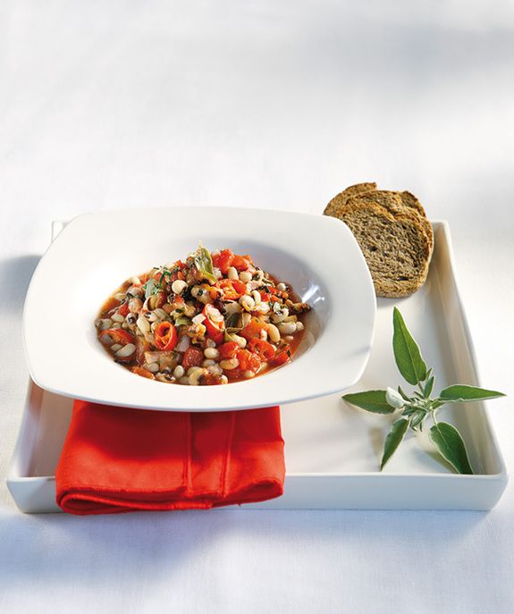 Μαυρομάτικα φασόλια μαγειρεύουμε για το πρώτο τραπέζι της εβδομάδας και για περισσότερη νοστιμιά τους προσθέτουμε πανσέτα και μια απολαυστικά καυτερή σάλτσα.