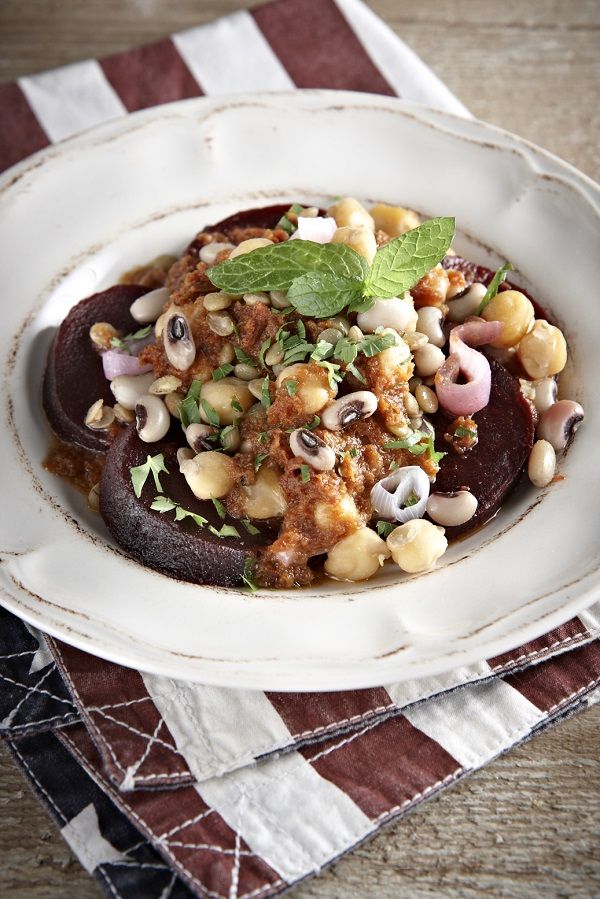 Μία σαλάτα με ψητά παντζάρια και όσπρια θα μπορούσε άνετα να προστεθεί στο τραπέζι μας.