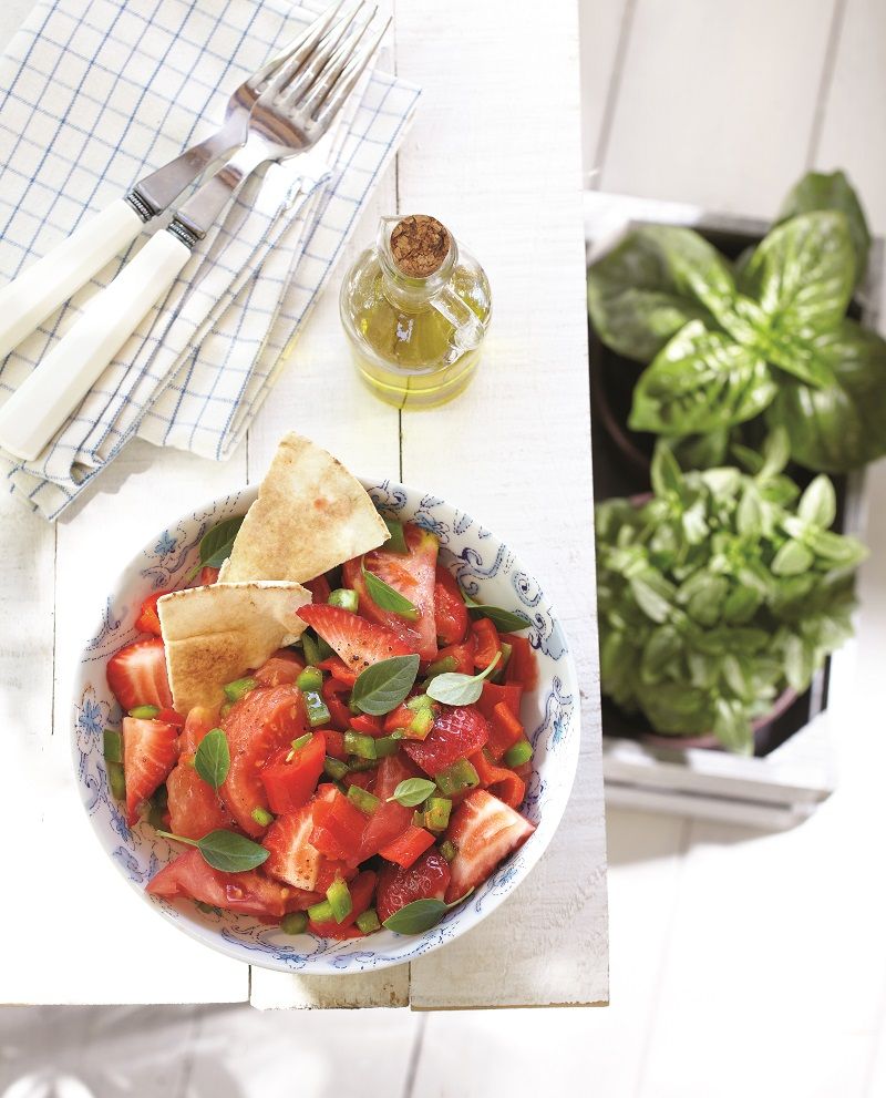 Δίπλα τους, μια ντοματοσαλάτα με πιπεριές Φλωρίνης
