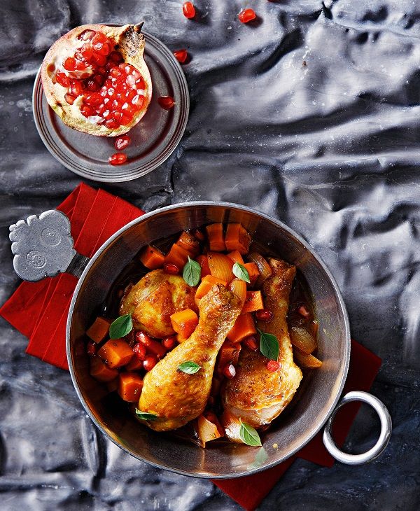 Για το κυριακάτικο τραπέζι προτείνουμε κοτόπουλο στην κατσαρόλα με γλυκοπατάτες και σάλτσα ροδιού,