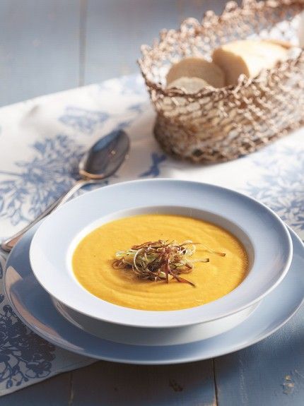 Με καροτόσουπα θα ξεκινήσουμε την εβδομάδα μας, αρωματισμένη με κάρι και σερβιρισμένη με τηγανητά πράσα.