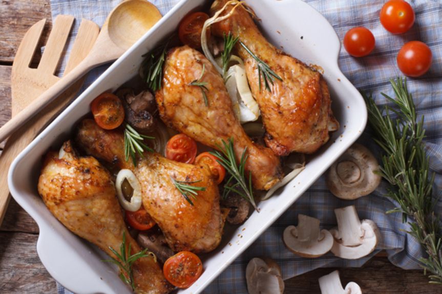 Για το κυριακάτικο τραπέζι ψήνουμε στο φούρνο κοτόπουλο της Μεσογείου με μανιτάρια και ντοματίνια