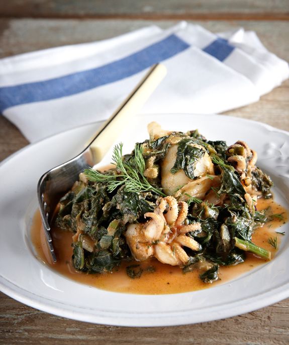 Ένα πολύ νόστιμο πιάτο που συνδυάζει αρώματα γης και θάλασσας με τις σουπιές να σιγομαγειρεύονται με χόρτα και φρέσκα μυρωδικά, ετοιμάζουμε για το τραπέζι της Παρασκευής.