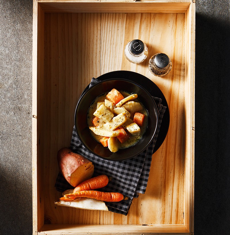 Με ένα νόστιμο, χορτοφαγικό πιάτο ξεκινάμε την εβδομάδα. Μαγειρεύουμε βουτυράτα λαχανικά με κρέμα καρύδας και μουστάρδα.