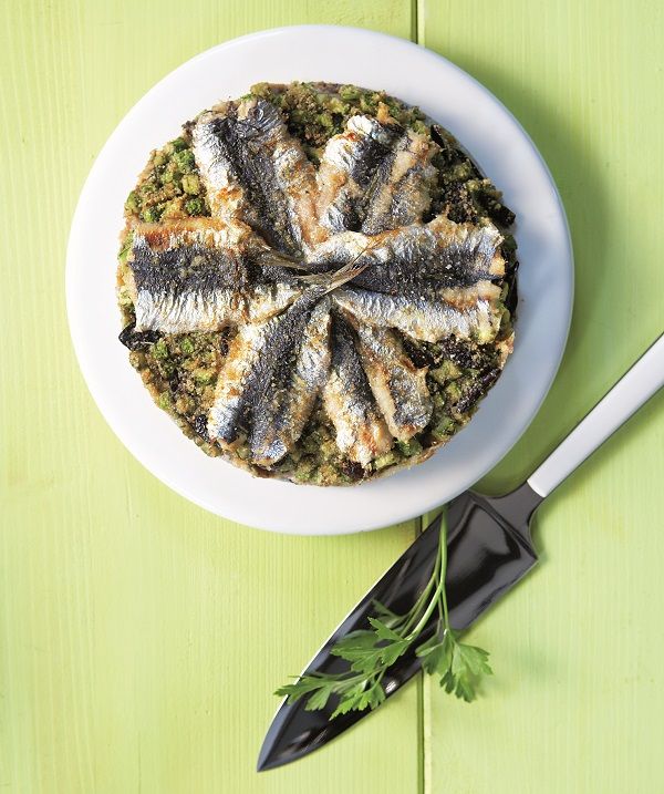 Τάρτα με σαρδέλες. Αυτή η τάρτα έχει μια μεγάλη παραξενιά. Τόσο η βάση όσο και η επικάλυψη της αποτελείται από φιλεταρισμένες σαρδέλες. Στο ενδιάμεσο έχει μια γέμιση από κολοκυθάκια, ελιές, παρμεζάνα και μυρωδικά. Μια συνταγή που αξίζει να δοκιμάσετε!