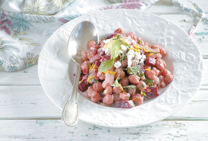 Σαλάτα με ρεβίθια, ψητά παντζάρια και κρεμμύδια. Συνδυάζουμε τα νόστιμα ρεβίθια με τη γλύκα του παντζαριού και την αψάδα του κρεμμυδιού, τα «ντύνουμε» με μια ωραία σος και φτιάχνουμε μια θρεπτική και χορταστική σαλάτα.