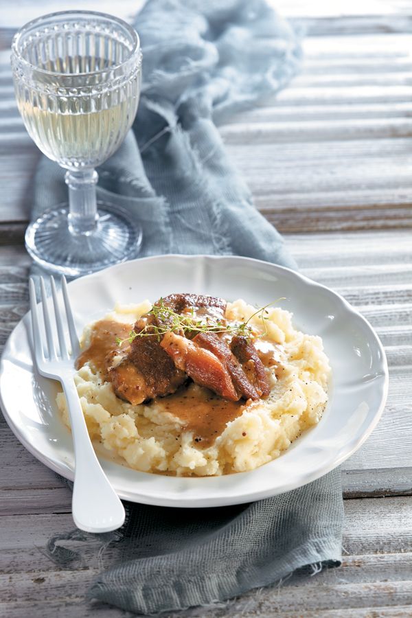 Χοιρινό λαιμό στην κατσαρόλα, με μια πλούσια κρασάτη σάλτσα ετοιμάζουμε για το τραπέζι της Τρίτης και το συνοδεύουμε ιδανικά με πουρέ πατάτας.