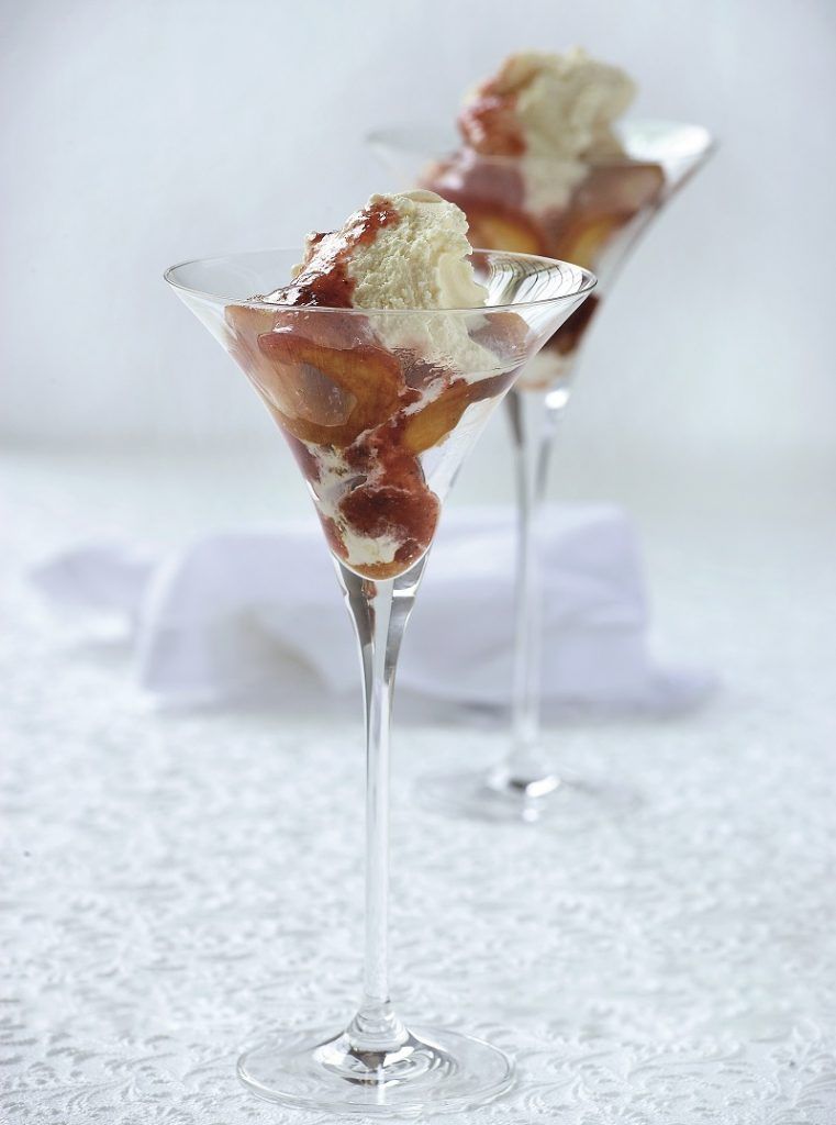 και για σαλάτα, ποικιλία πράσινων σαλατικών με ψητά ροδάκινα, ταλαγάνι και παστέλι.