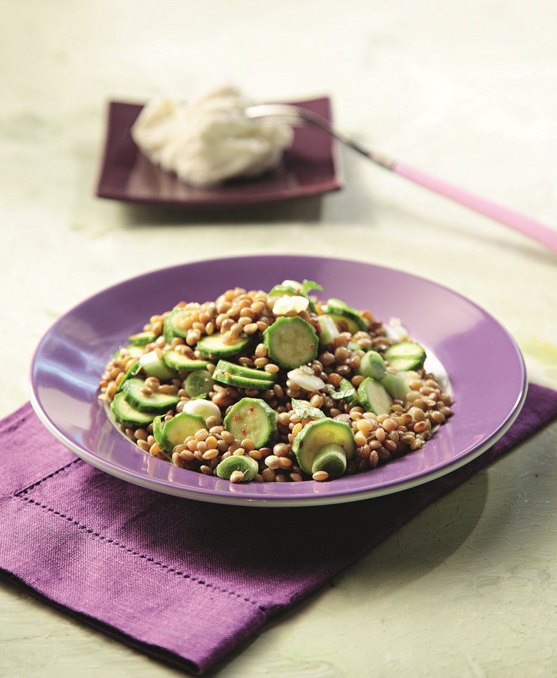 Πικάντικη σαλάτα με φακές και μαριναρισμένα κολοκυθάκια. Ένας διαφορετικός τρόπος να μαγειρέψετε τις φακές και να έχετε ένα πρωτότυπο αλλά και πιο πικάντικο πιάτο. Τα κολοκυθάκια δίνουν μια φρεσκάδα στη συνταγή.