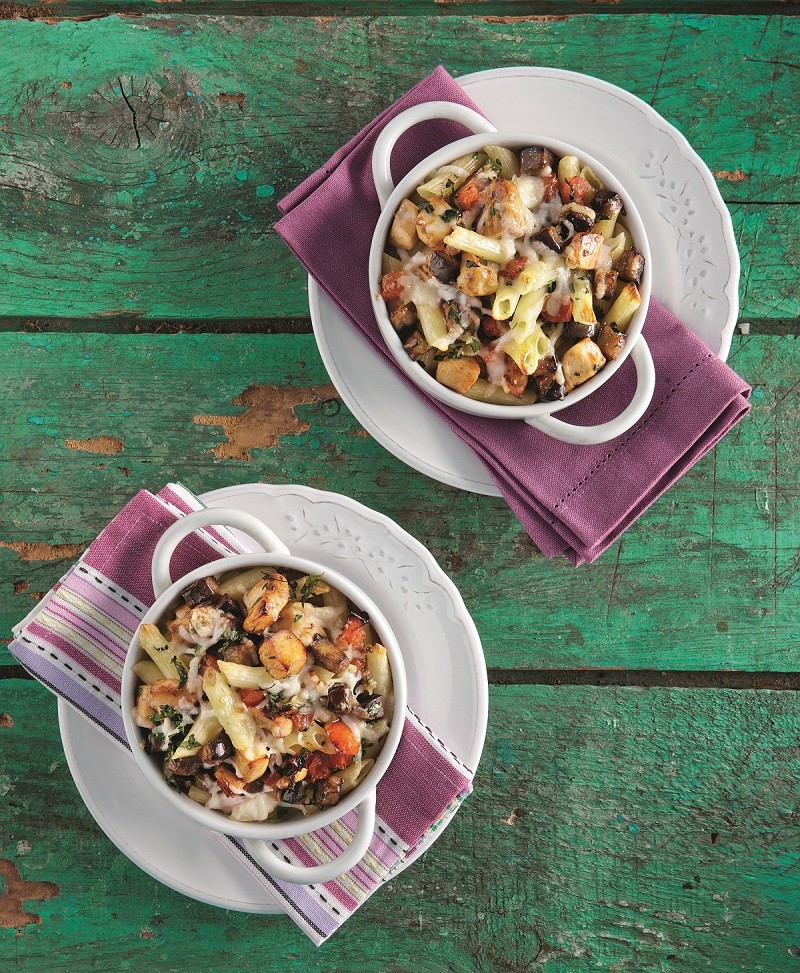Γκρατέν με μελιτζάνες, πέννες και κοτόπουλο. Μια εύκολη αλλά πολύ γευστική συνταγή που παντρεύει τις μελιτζάνες με το κοτόπουλο και τα ζυμαρικά.