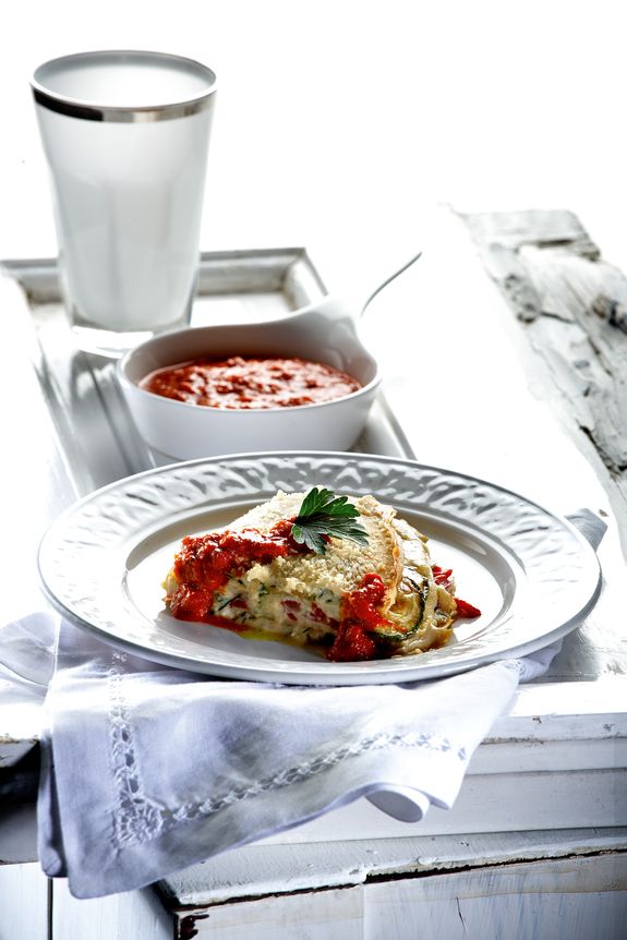 Κρέπες με κολοκύθια, ψητή πιπεριά και κατίκι Δομοκού. Οι διάσημες κρέπες μεταμορφώνονται στην πιο νόστιμη και εύκολη αλμυρή τούρτα. Τα κολοκυθάκια, οι πιπεριές Φλωρίνης και το κατίκι Δομοκού της δίνουν μεσογειακό αέρα και μοναδική γεύση.