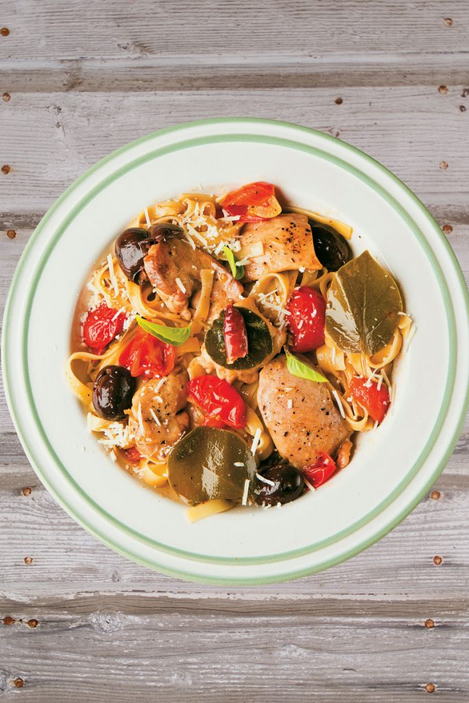 Κοτόπουλο α λα πουτανέσκα με ταλιατέλες. Μια συνταγή με ζυμαρικά και αναφορές στη διάσημη σπεσιαλιτέ του ιταλικού Νότου.