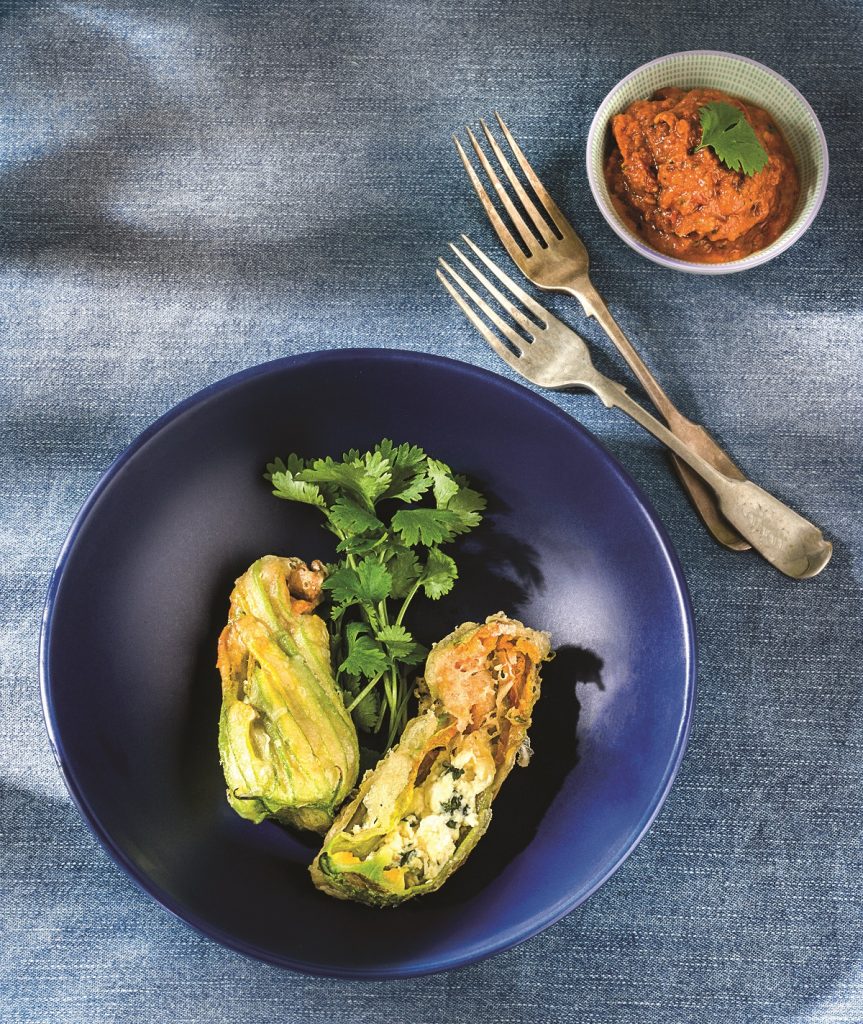 Κολοκυθοανθοί τηγανητοί γεμιστοί με τυριά, με ντιπ φρέσκιας και λιαστής ντομάτας. Τι νοστιμιά και χάρη για αυτό τον μεζέ! Μέχρι να τους βάλετε στο τηγάνι θα έχετε έτοιμο και το ντιπ! Τα ούζα και τα τσίπουρα μην ξεχάσετε!