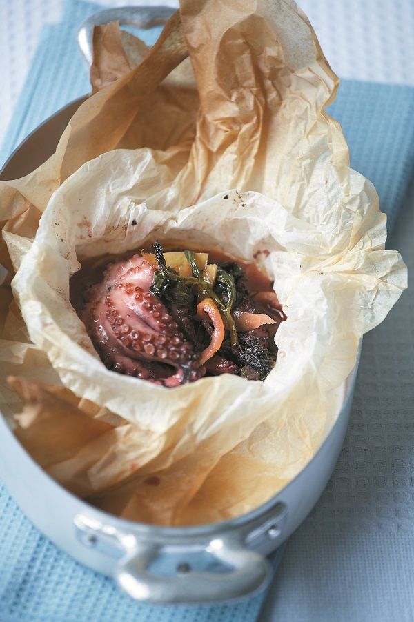 Τυλίγουμε το χταπόδι στο χαρτί και έχουμε ένα απολαυστικό θαλασσινό πιάτο με λεμονάτα αρώματα, που ταιριάζει πολύ με μια πατατοσαλάτα.