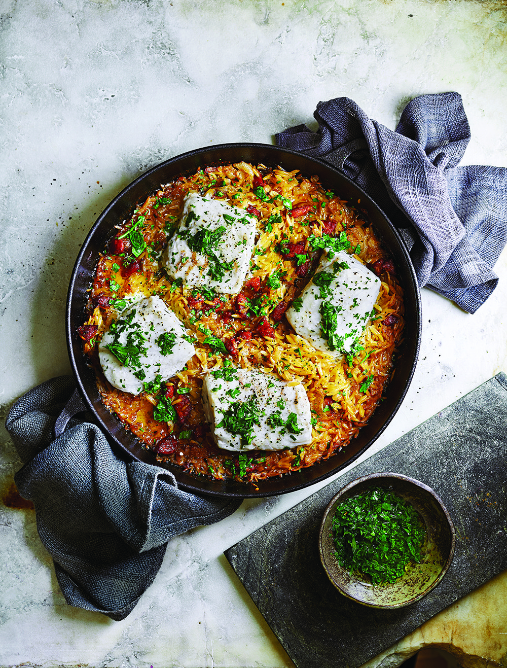 Φτιάχνουμε το πιο απολαυστικό κριθαρότο με φιλέτο σφυρίδας και τσορίθο. Ένα χορταστικό γεύμα για όλη την οικογένεια.