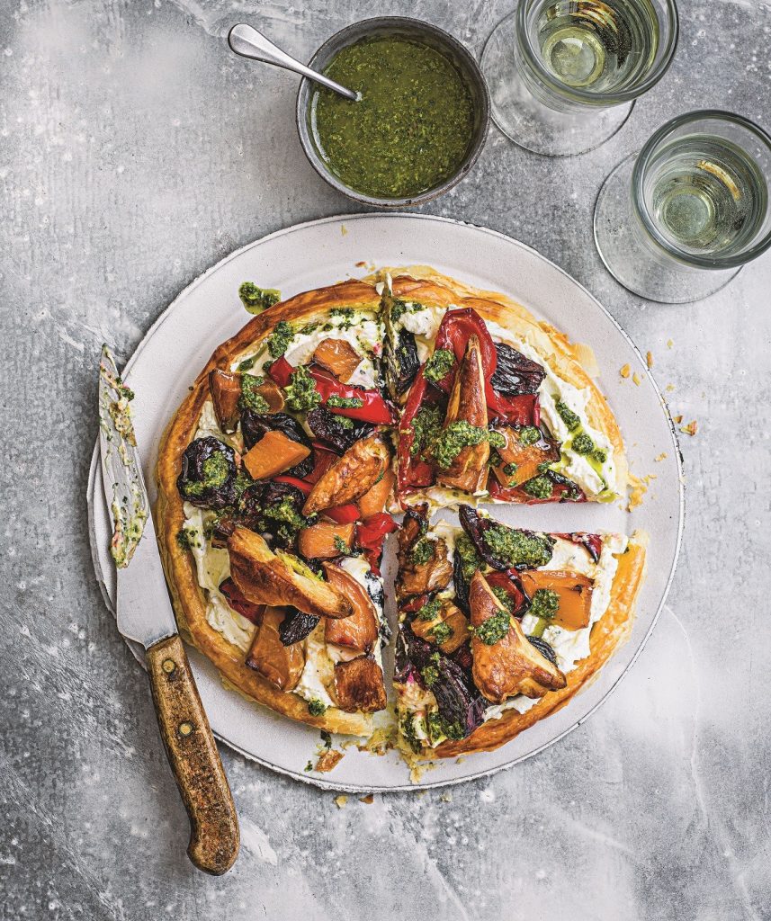 Τάρτα με ψητά λαχανικά και πράσινη σάλτσα