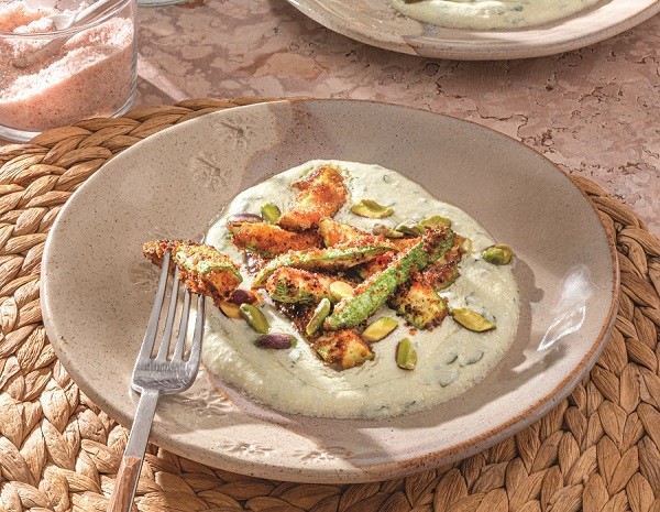 Κολοκυθάκια ψητά με κρέμα φέτας και φιστίκι Αιγίνης