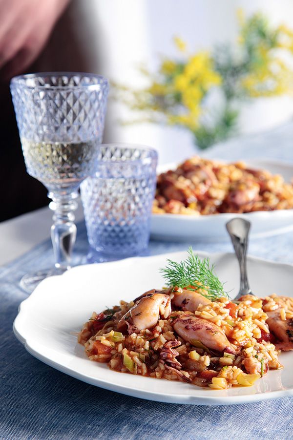 Νηστίσιμη και η συνταγή της Μεγάλης Τρίτης, όπου ετοιμάζουμε πιλάφι με καλαμαράκια και ντομάτα.