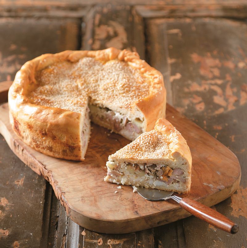 και δίπλα της στο τραπέζι θα βάλουμε πασχαλινή κρεατότουρτα από τα Χανιά
