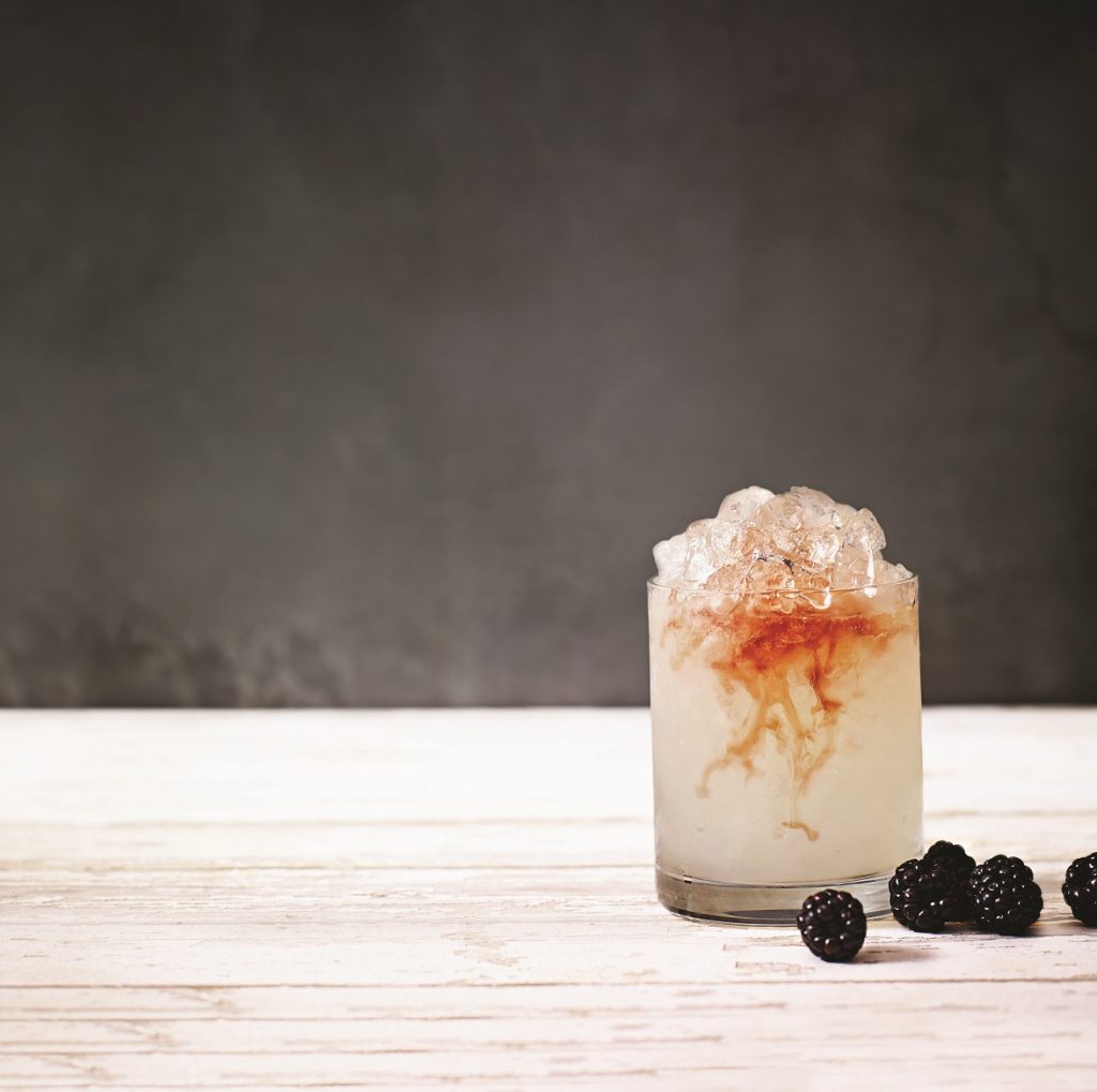 Χτυπάμε σε σέικερ τα τρία πρώτα υλικά μαζί. Σουρώνουμε σε ποτήρι γεμάτο με πάγο. Προσθέτουμε λικέρ βατόμουρο πάνω από τα παγάκια σε αργή ροή για να απλωθεί μέσα στο ποτό και σερβίρουμε με μια φέτα λεμόνι και βατόμουρα αν μας αρέσει.